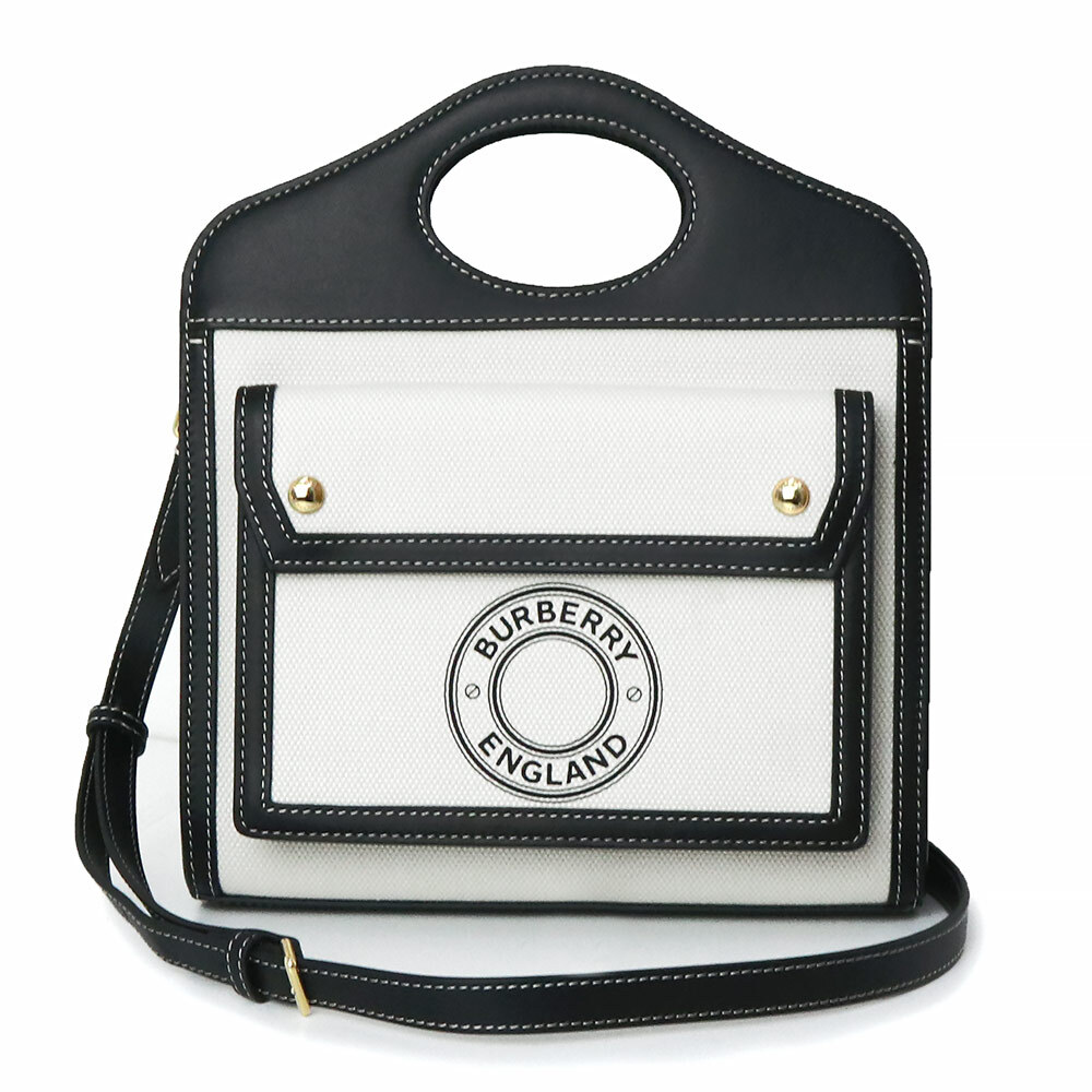 > (新品・未使用品)バーバリー BURBERRY ミニ ロゴグラフィックポケット ショルダーハンドバッグ コットン カーフレザー ブラック 80280581