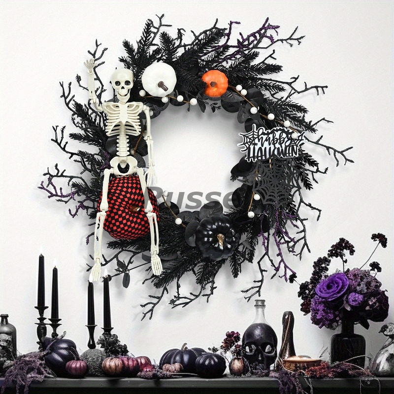 - インテリア 壁掛け 骸骨 リース おしゃれ ユニーク ハロウィン ハロウィーン 装飾 ウォール アート 骸骨 スカル かぼちゃ 玄関 リビング