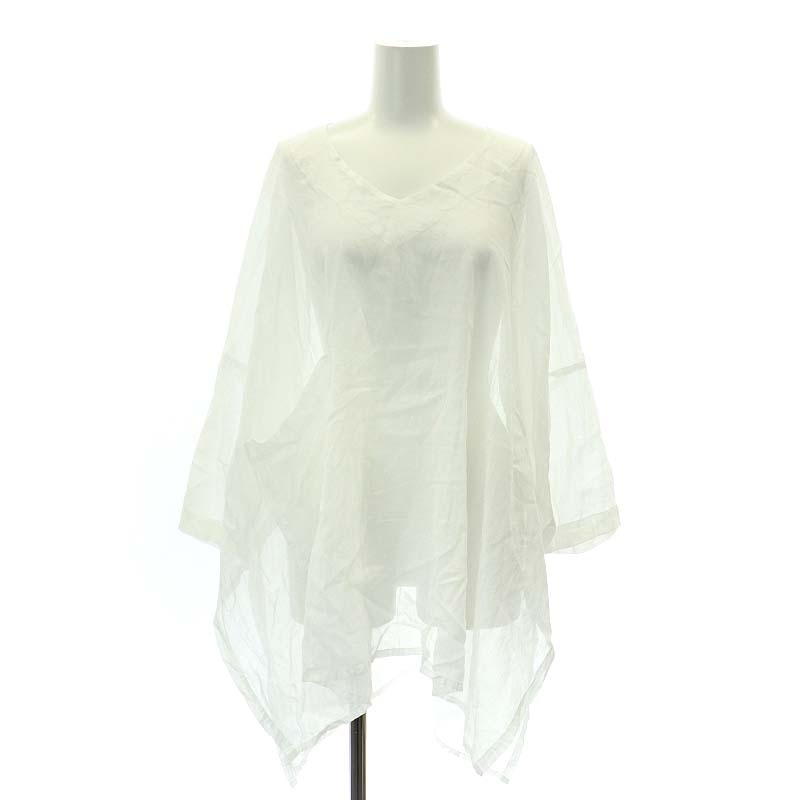 - ギャレゴデスポート gallego desportes コットン シアー ノーカラーチュニック 長袖 Vネック シースルー オーバーサイズ S 白 ホワイト