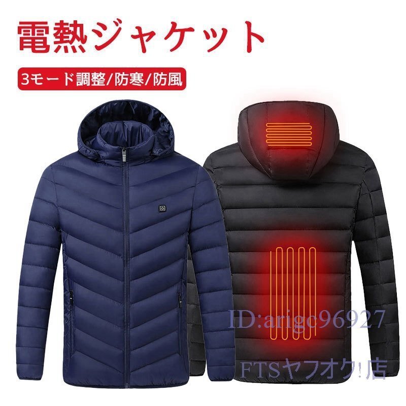 > X183☆加熱ジャケット 3段温度調整 電熱ウェア 防水防寒服 電熱ベスト男女兼用 登山 釣り ヒーター 大きいサイズ ジャケット 4XL
