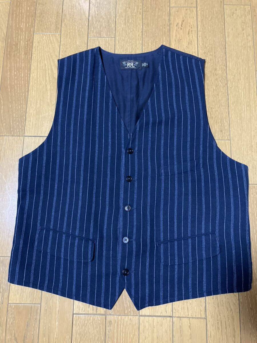 - RRL ストライプベスト XL ネイビー インディゴ ジレ ベスト ウール ラルフローレン ジョニーデップ