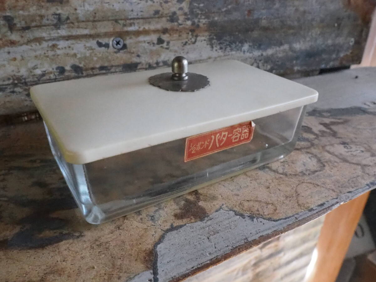 - 【昭和レトロなバターケース】デッドストック未使用品ガラス容器キッチン古道具アンティーク骨董インテリア調理器具インダストリアル
