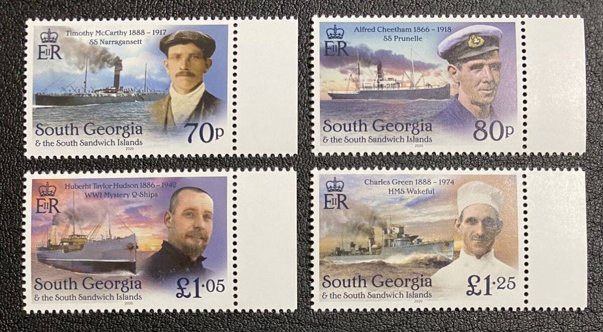 - サウスジョージア・サウスサンドイッチ諸島 シャクルトンを支えた英雄たち 帆船 南極 4種完 未使用 NH
