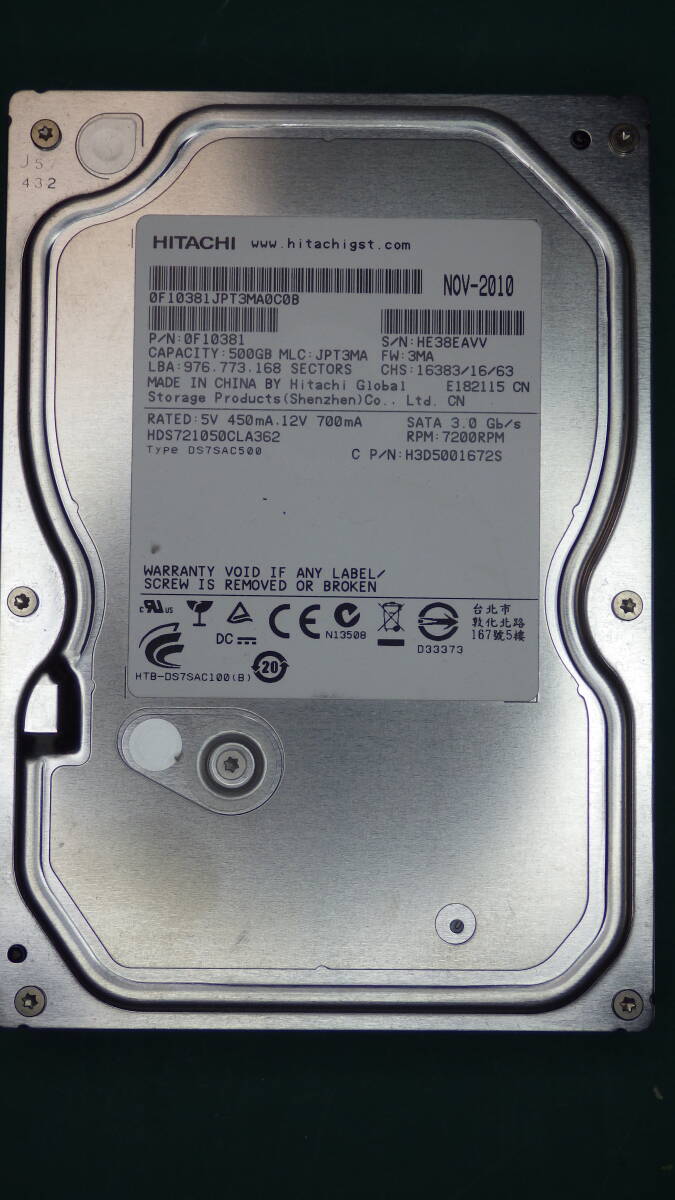 - Hitachi HDD SATA HDS721050CLA362 500GB 動作確認済 送料無料(500051)