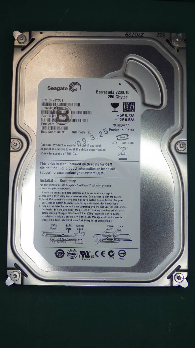> Seagate HDD SATA ST3250310AS 250GB 動作確認済 送料無料(250040)
