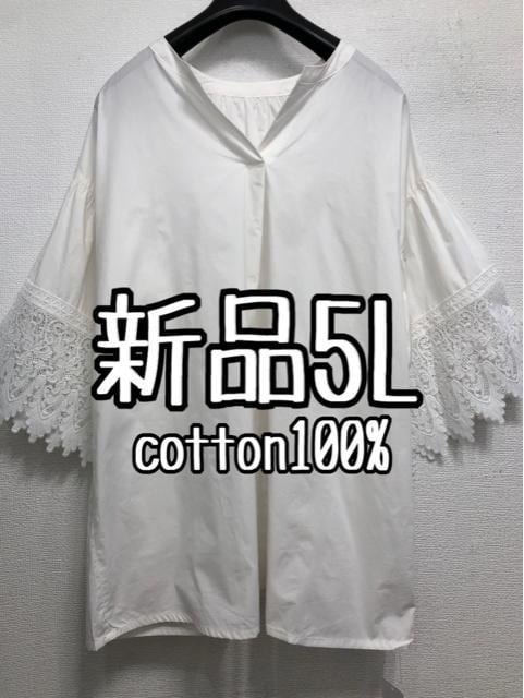 - 新品☆5L♪白系♪レース切替ブラウス♪キーネック♪おしゃれ☆r875