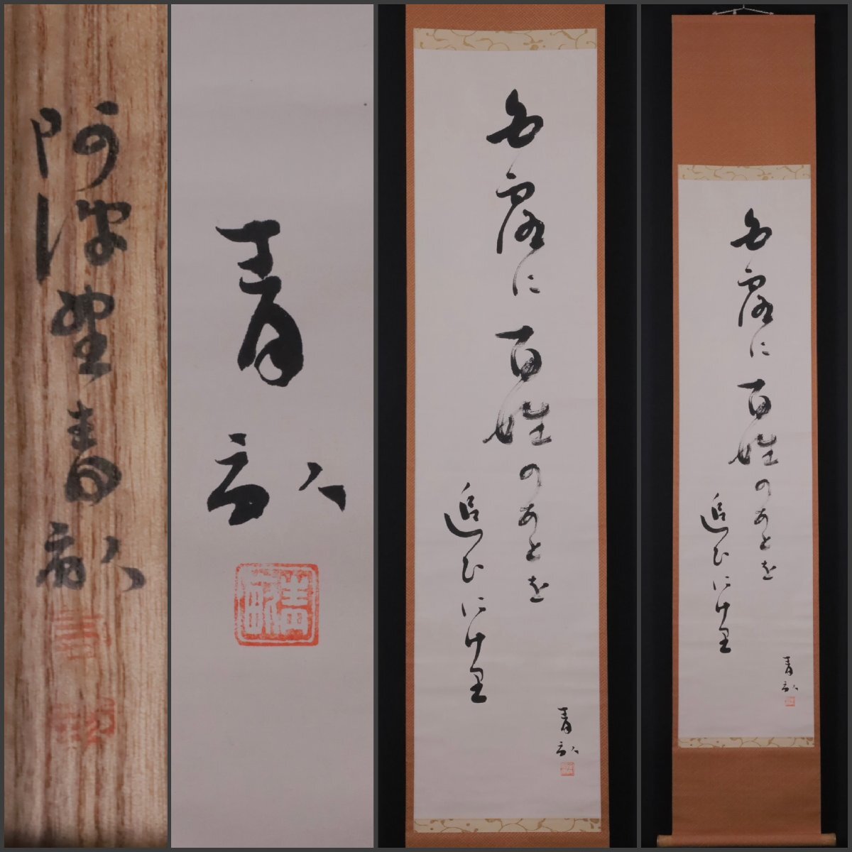 - 【模写】吉】11265 阿波野青畝 俳句「白露」 共箱 高浜虚子師事 俳人 奈良県の人 書家 茶掛け 茶道具 掛軸 掛け軸 骨董品