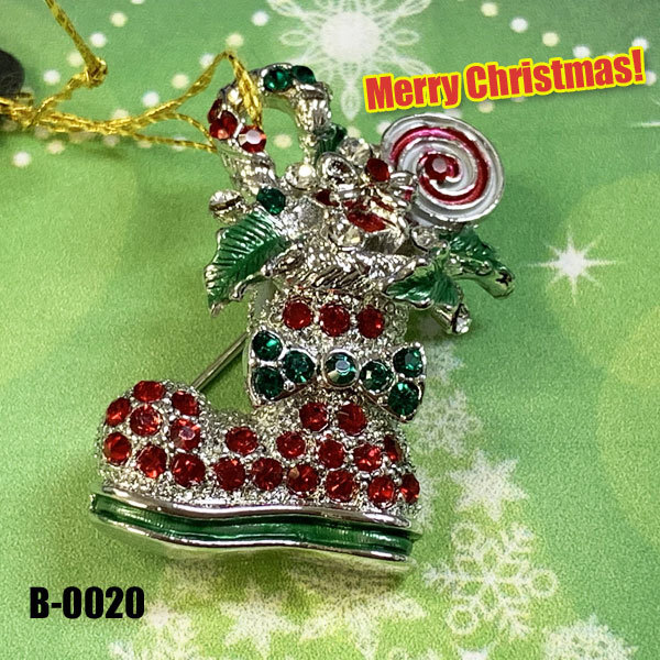 - X'mas キラキラ ブーツ ブローチ オーナメント 映え かわいい クリスマス パーティー R◇B-0020