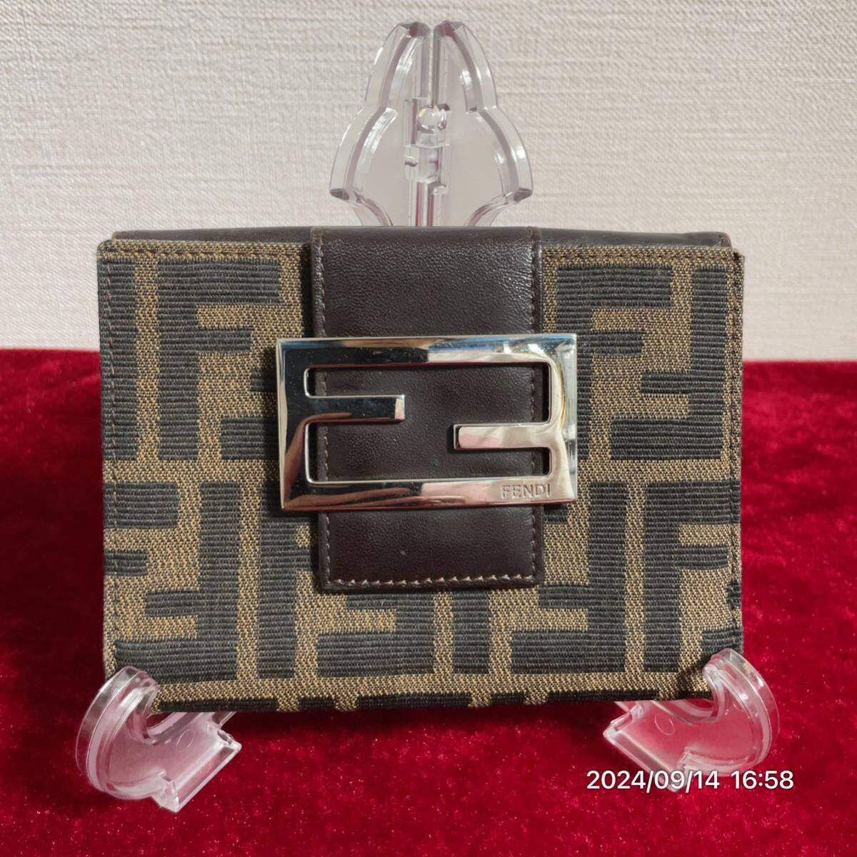 - FENDI フェンディ FFロゴ ズッカ柄 キャンバス レザー 革 二つ折り ウォレット 財布