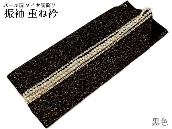 > 重ね衿 振袖 レース 衿 ダイヤ調 パール調飾り 重ね襟 黒 金糸 かさねえり 伊達衿 日本製 成人式 結婚式 卒業式 メール便送料無料