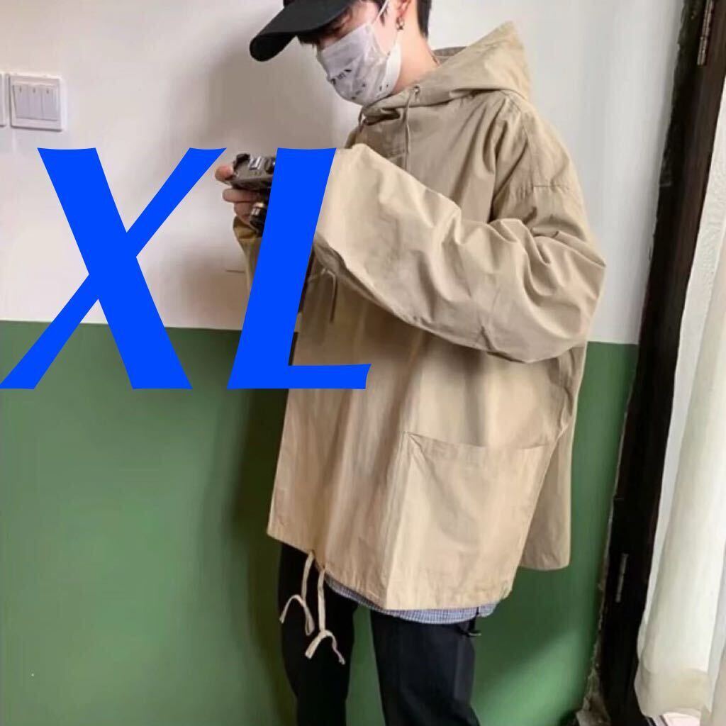 - パーカー ビッグシルエット トップス アウター プルオーバー フード トレンド ストリート スタンダード メンズ レディース ベージュ XL