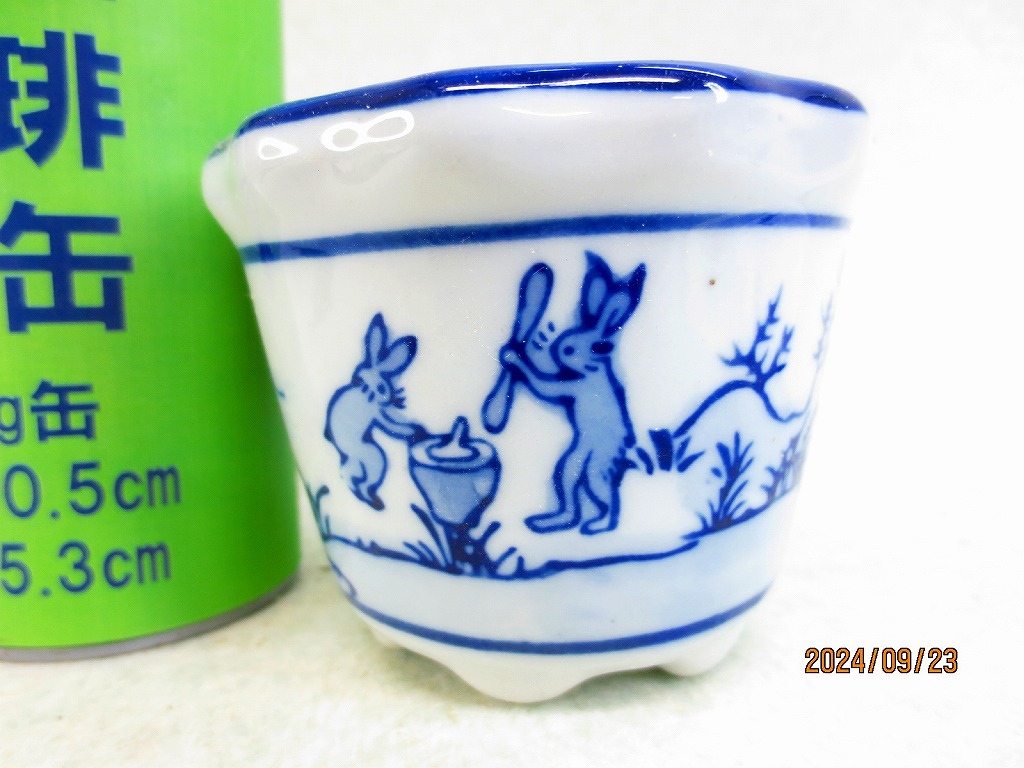 > [緑の市場] 小品盆栽鉢 銘無 絵入白釉丸鉢 7.7㎝ (A477)定形外郵便送料無料/ゆうパック発送有料*選択可※無料発送はポスト投函