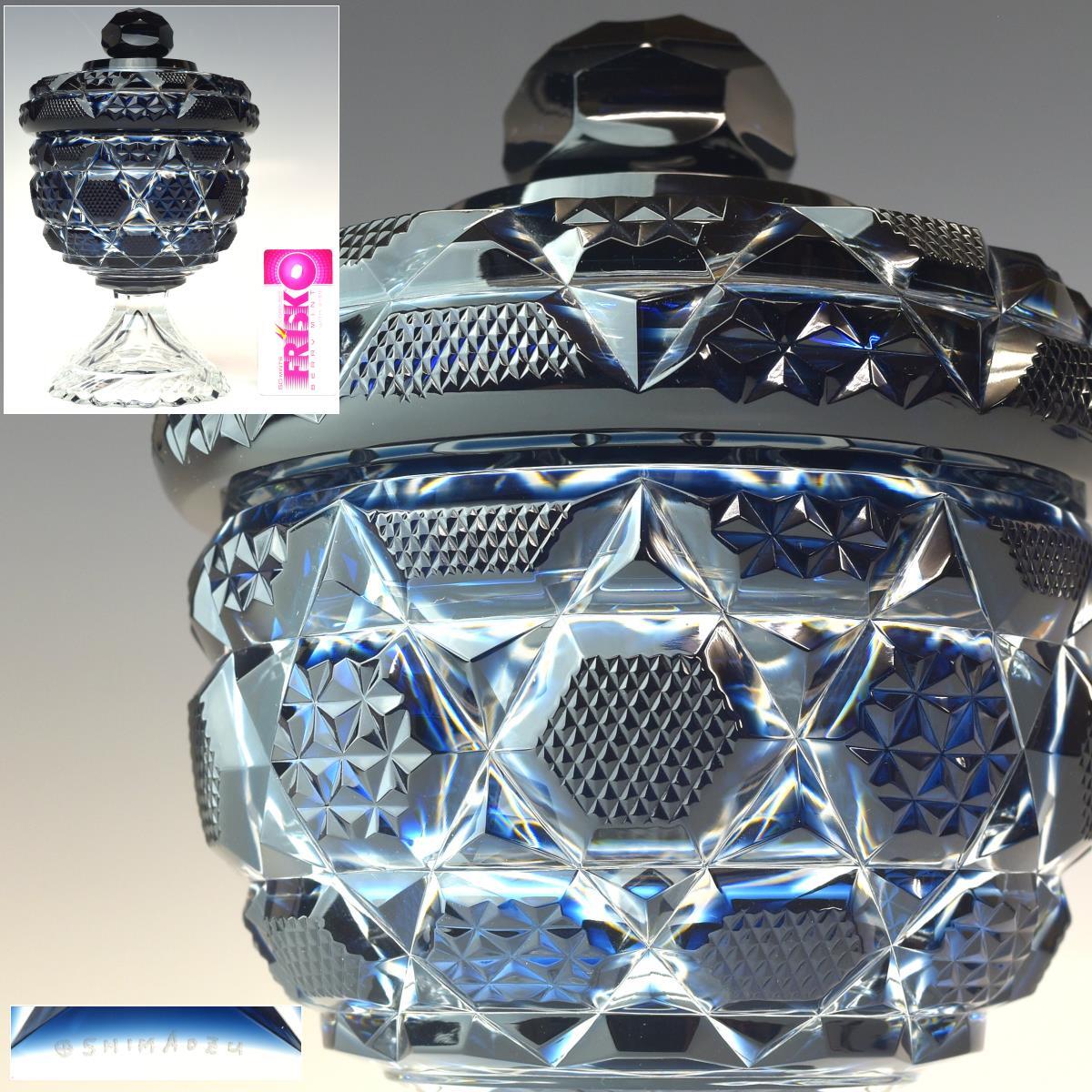 > 【趣楽】 薩摩ガラス工芸作 復元島津 薩摩切子 「脚付蓋物」 高さ18cm 定価税込 605, 000円 本物保証 C1981