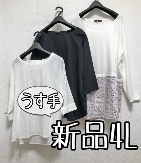 - 新品☆4L♪うす手トップス3枚セット♪ドッキングデザインも♪☆b974