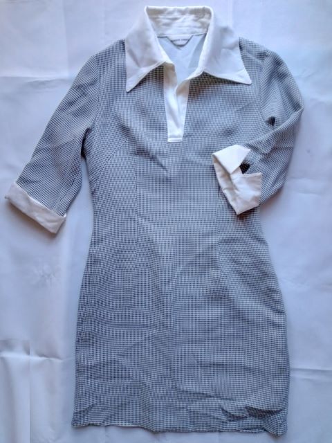 - MARIENE JOBERT 千鳥格子スキッパーワンピース 9号 五分袖
