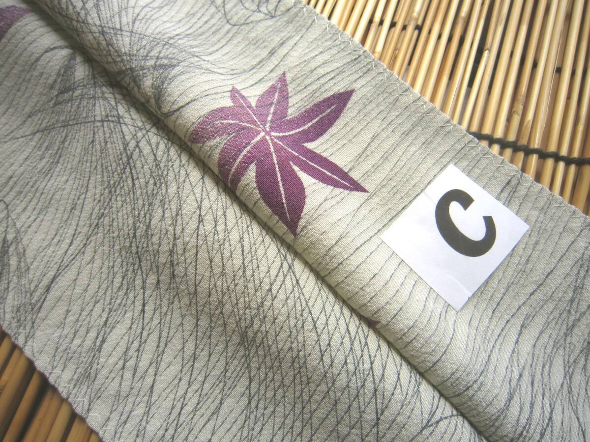 ■正絹縮緬 淡いグレージュにグレーの線描き流水と藤色系楓、染柄半衿です。無地の着物などに合わせて昔着物の着こなしに