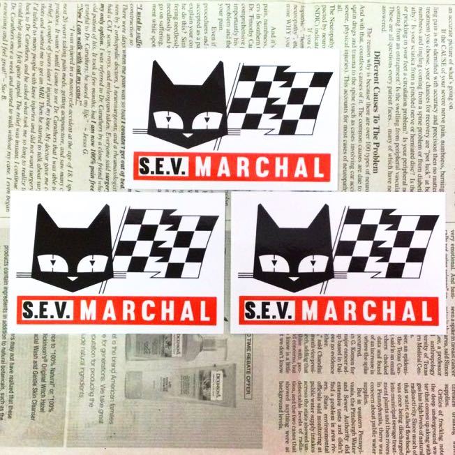 > MARCHAL マーシャル ステッカー 3枚 セット / ネコ ヘッドライト レーシング 車 バイク カスタム 防水 シール 人気 ブランド アメリカン雑