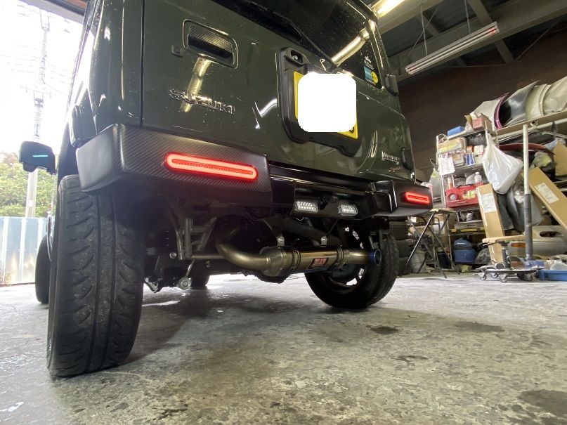 > 未塗装 JB64 ジムニー リア バンパー ショート 切り上げ FRP インチアップ風 未塗装 64 マフラー見せ! ヨシムラ 例