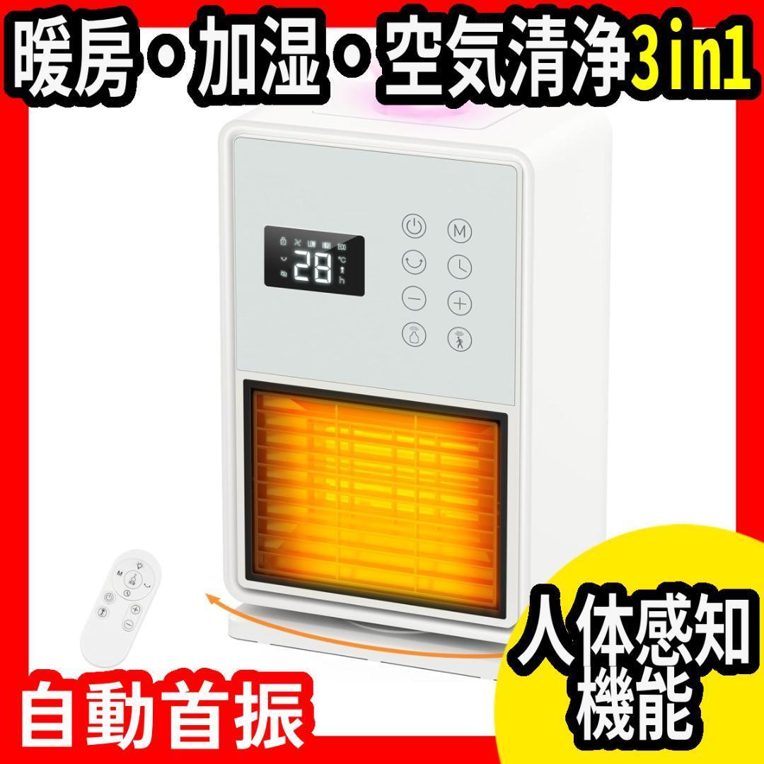 > セラミックヒーター 1台3役 小型 首振 暖房 加湿 空気清浄 人感センサー 白 おしゃれ 節電 対策 4つの温度モード AI温度 多重安全保護 新品