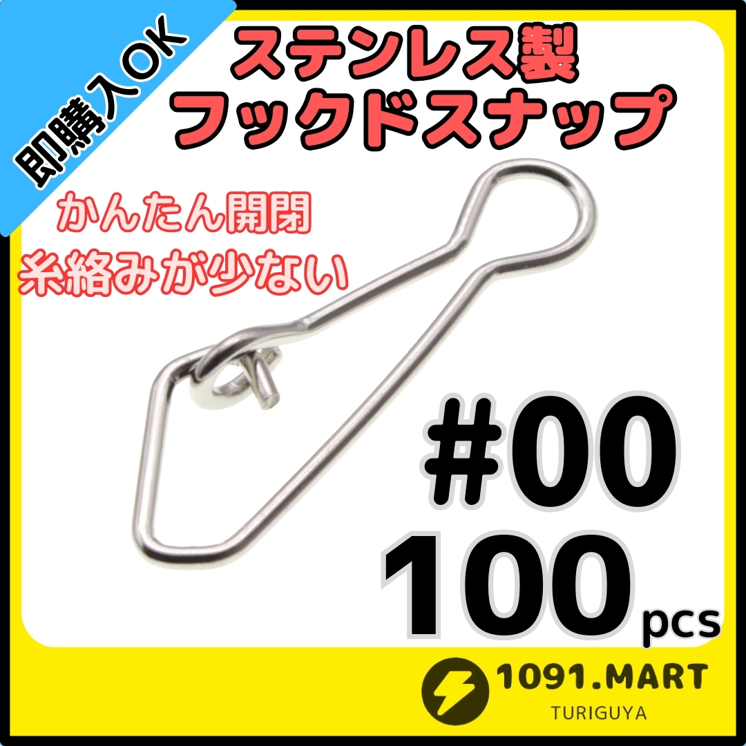 > 【送料150円】ステンレス製 フックドスナップ #00 100個セット インタースナップ ルアー釣り エギング かんたん開閉 すり抜け抜群!