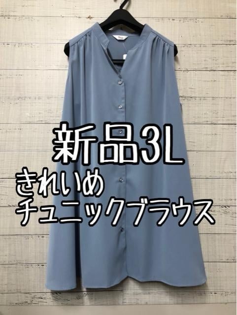 - 新品☆3L♪ブルー系♪きれいめノースリーブチュニックブラウス♪☆k700