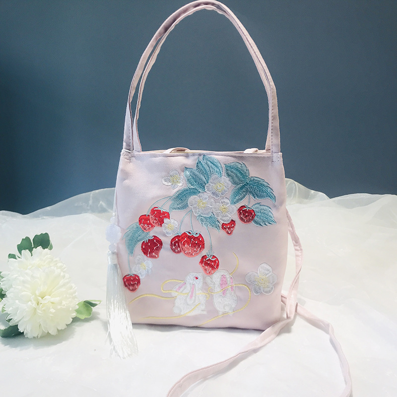 - イチゴ&うさぎ 和風 ハンドバッグ 和服浴衣 オシャレ手提げショルダー鞄 カバン