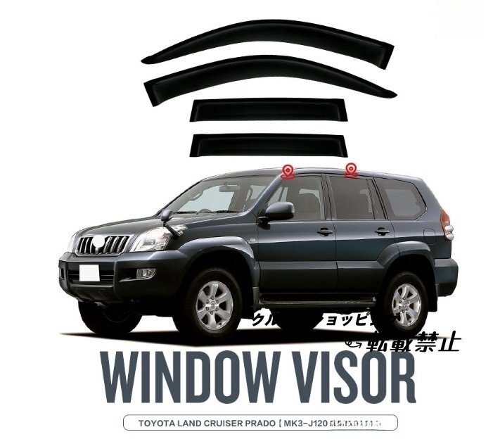 > トヨタ ランドクルーザープラド 120系 2002 - 2009年 サイド ウインドウ バイザー サイド 外装4Pセット 換気 雨除け 風切り音防止