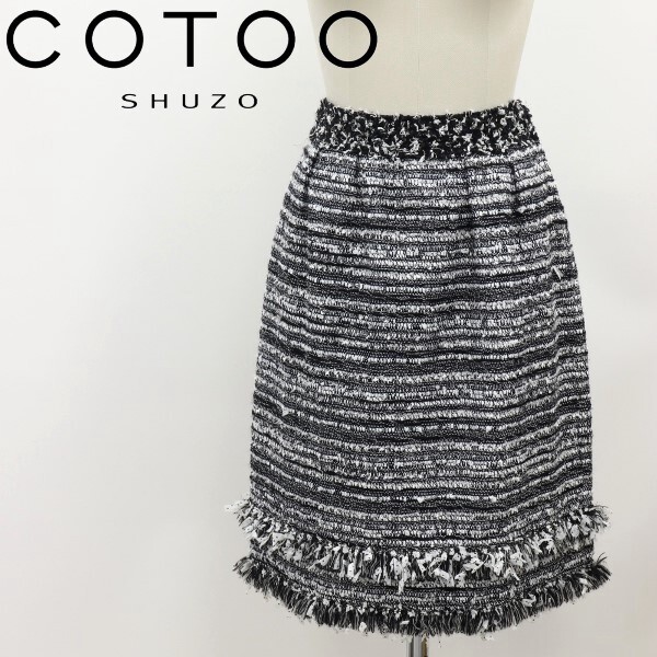 - ◆COTOO コトゥー フリンジ ネップ ツイード スカート ブラック 黒 36