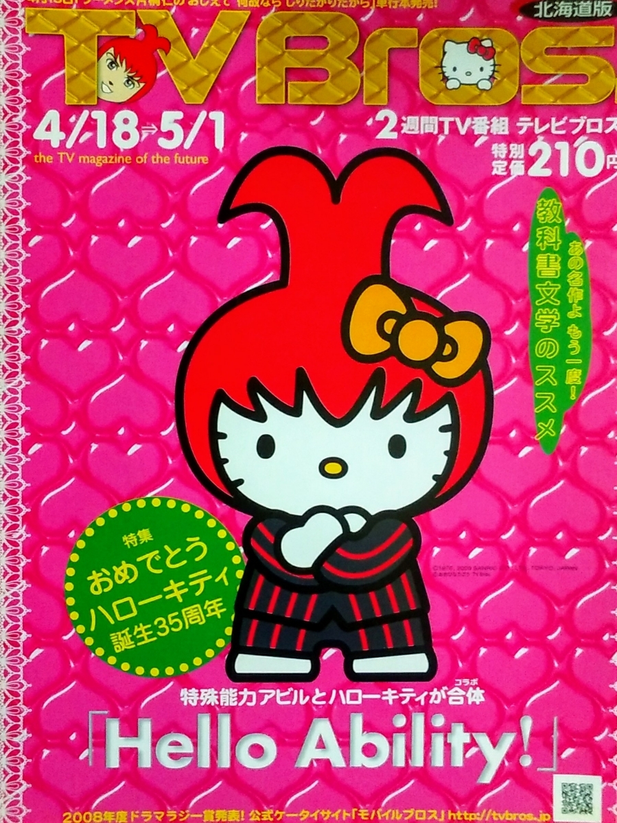 > 送料79円~◆2009.4/18 テレビブロス◆TVBros.ハローキティ☆誕生35周年/教科書文学のススメ/キュートン.椿鬼奴/長友佑都/星野源・Perfume