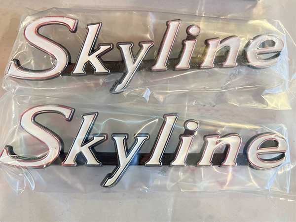 - 日産 純正 ハコスカ スカイライン エンブレム 2個 セット 検索 レストア マフラー グリル エンブレム メーター 旧車 フェンダー レストア