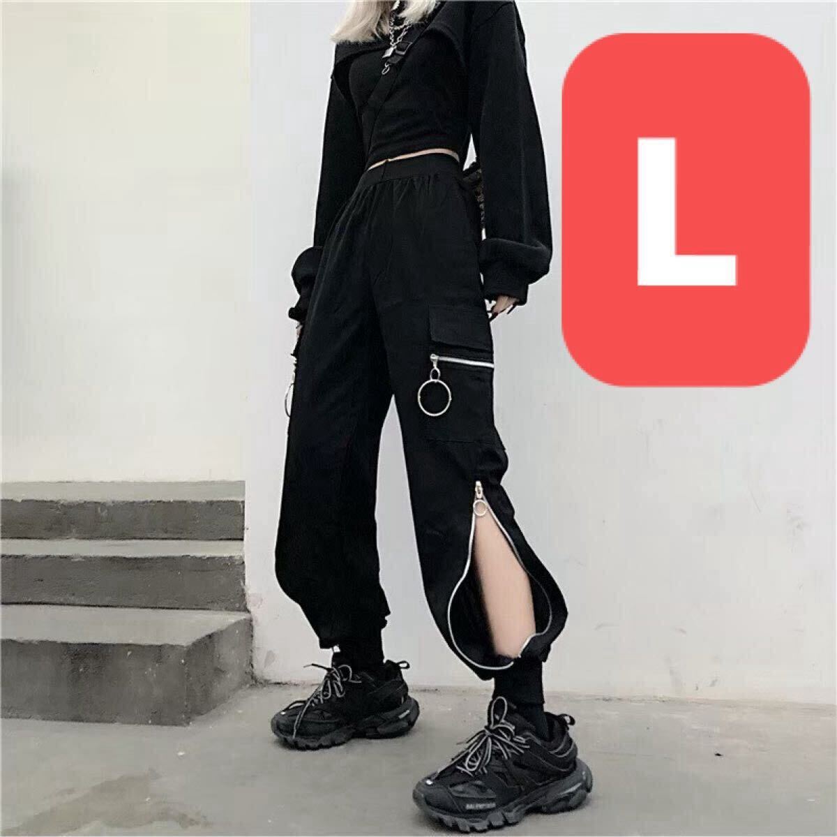 > ボトムス サイドジップ ジョガーパンツ スリット イージーパンツ トレンド ストリート メンズ レディース オルチャン ダンス 衣装 黒 L