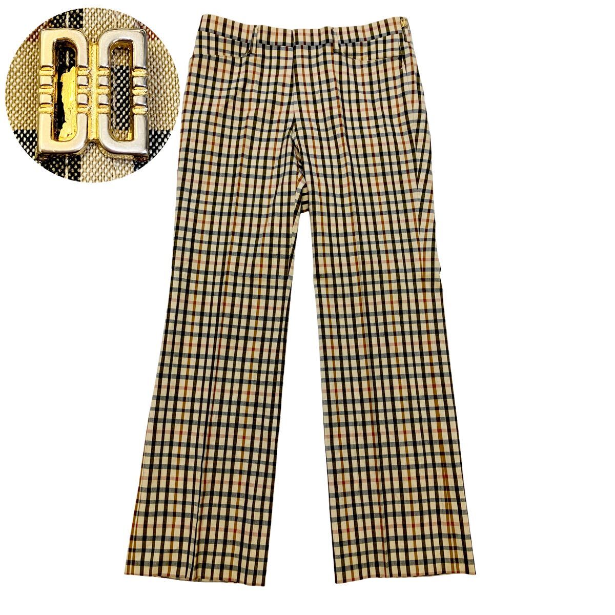 - DAKS ロゴ金具 ゴールド ハウスチェック オールド ワイドスラックス ストレッチ パンツ W82 L相当 ダックス トラッド ゴルフにも