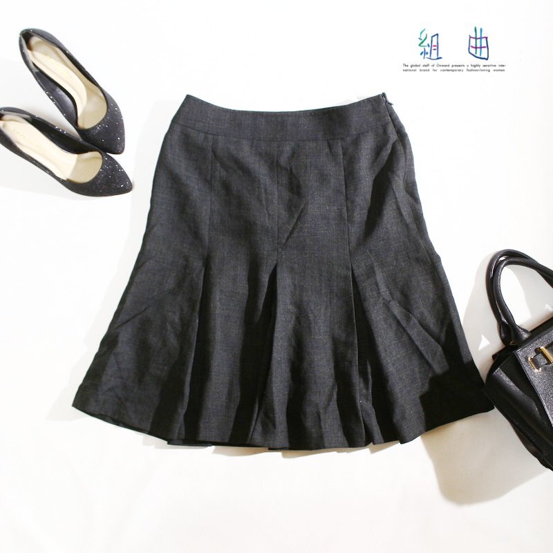 > 美品 組曲 クミキョク 株) オンワード樫山 秋 冬 ウール混合 スーツ フレアスカート 9号 2 グレー ビジネス フォーマル