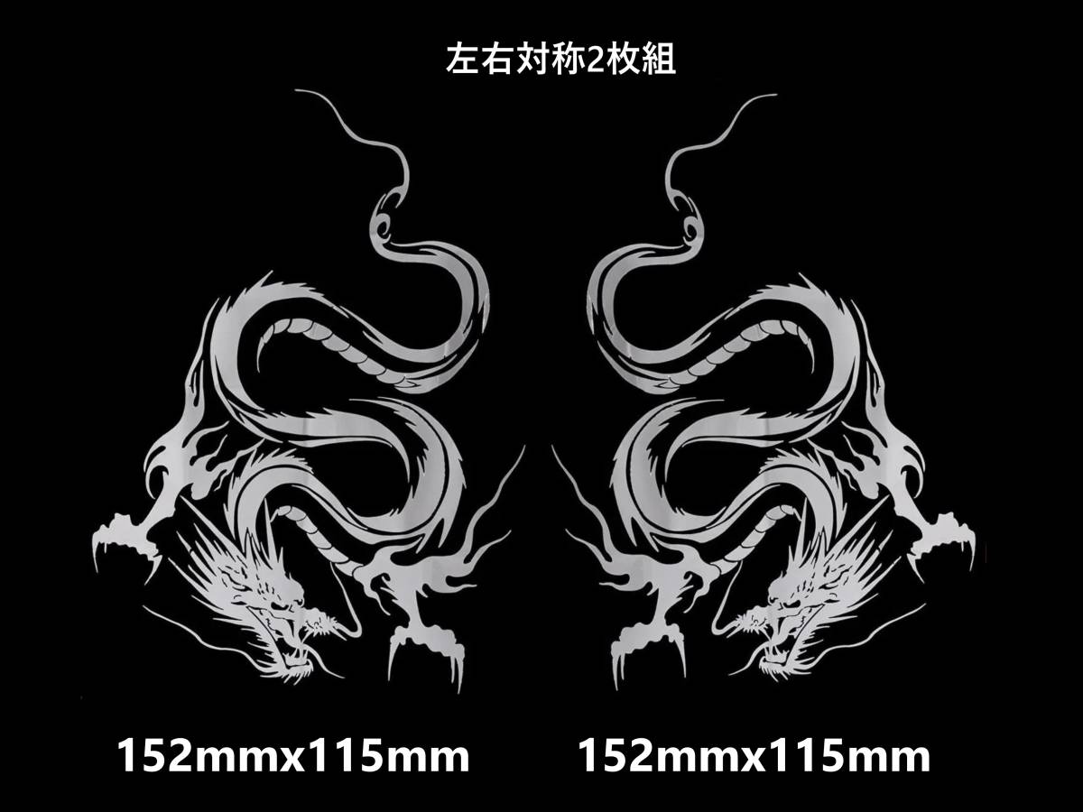 > 【左右用2枚♪ シルバー 約150mm】アート 龍 ドラゴン アメリカ バイク ステッカー ヘルメットデカール スーツケース