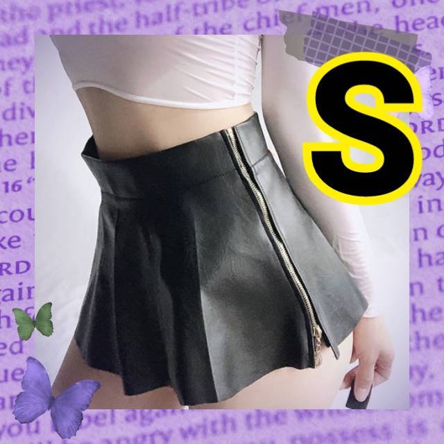 - ◆ミニスカート 合皮 皮 レザースカート タイト プリーツ レディース ブラック コスプレ