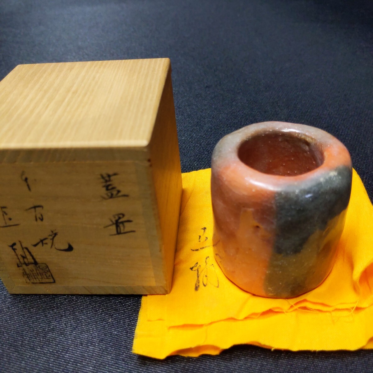- 228 茶道具 蓋置き 本間焼 池田退輔 共布 共箱 栞 5×5×5.5cm