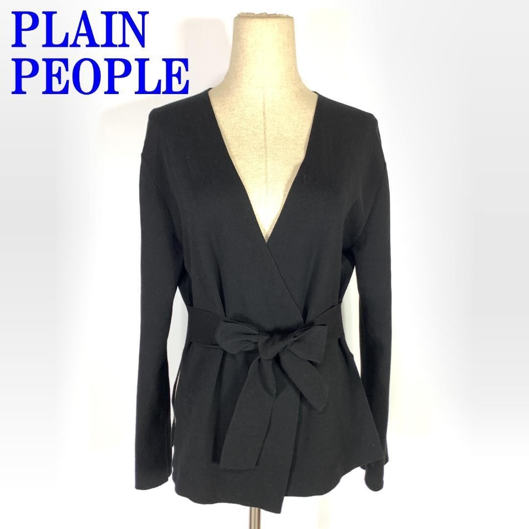- プレインピープル 長袖カーディガン 長袖 綿 ベルト付き 黒 PLAIN PEOPLE コットン ブラック9 C1320