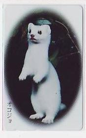 - 6-a533 動物 オコジョ 貼付 テレカ