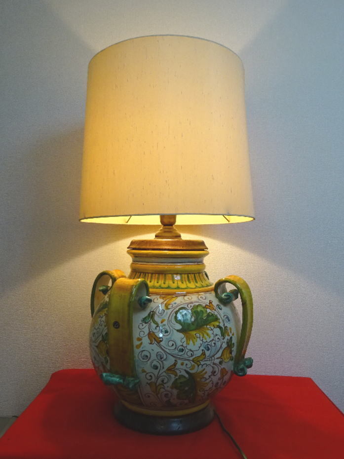 - ■□イタリア グッビオ 陶器 大型テーブルランプ フロアライト 壺 手描き 植物 インテリア□■