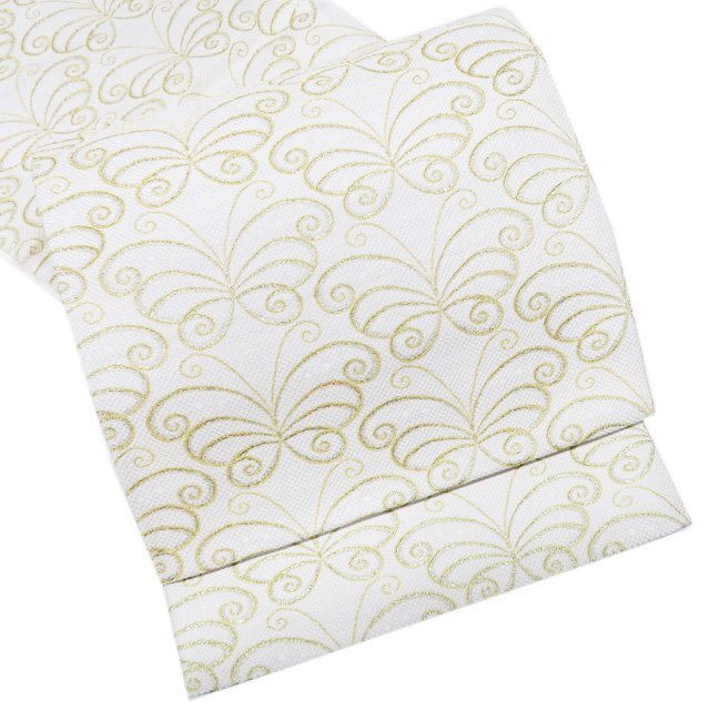 - 袋帯 中古 リサイクル 正絹 フォーマル 仕立て上がり 六通 蝶模様 箔糸 淡黄蘗色 金 きもの北條 A1093-12