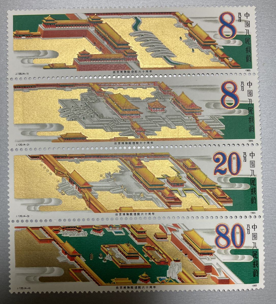 - 中国切手 J120 故宮博物院60周年 4種縦連刷 未使用