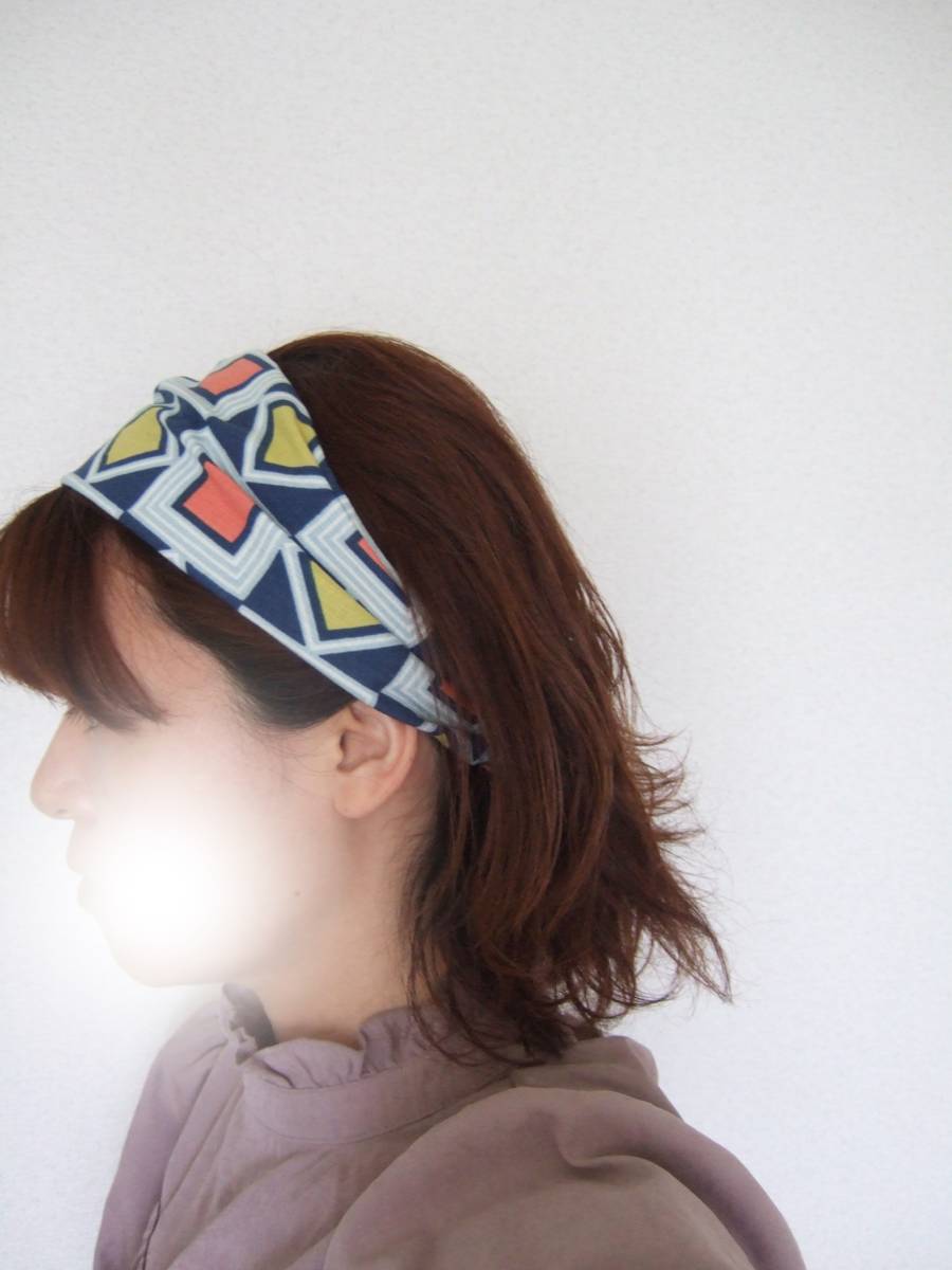 - ★即決★ハンドメイド モダンな幾何学模様 ネイビーゆるターバン****ヘアバンド ヨガなどのお供に