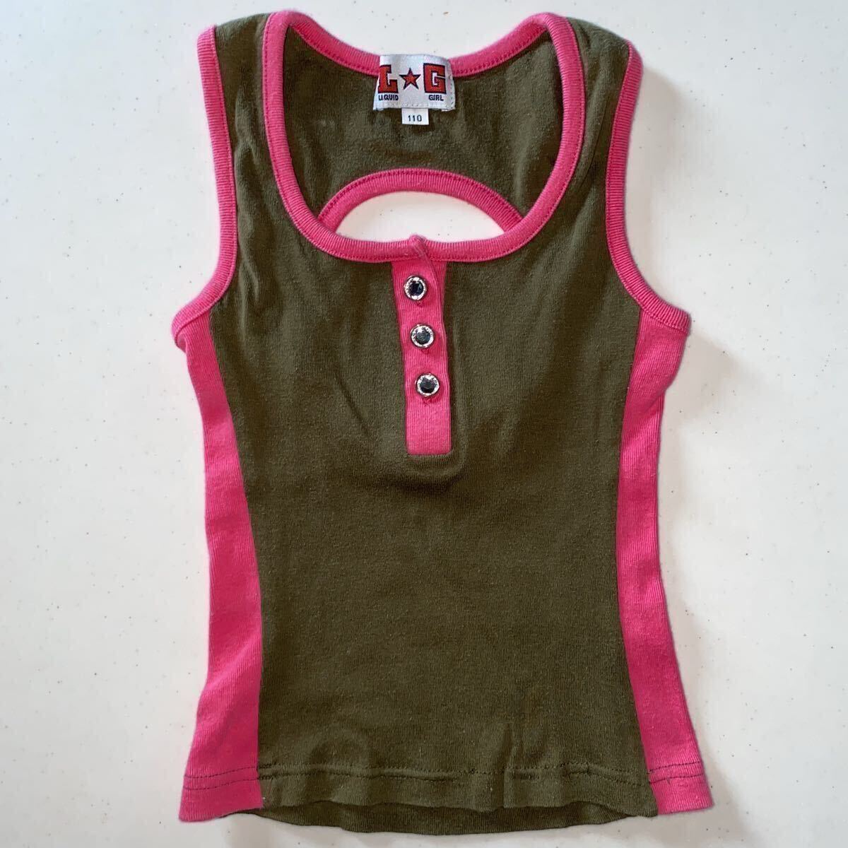 > 110サイズ 背中あきタンクトップ カーキ&ピンク 韓国キッズトップス