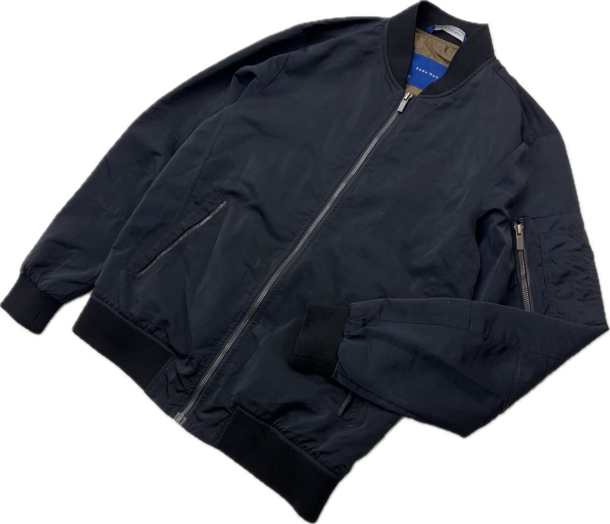 > ZARA MAN ザラ マン ダークネイビー MA-1型 ジャケット 薄手 ブルゾン M メンズ 秋冬 スタイリッシュ ミリタリー ストリート 古着■CC292