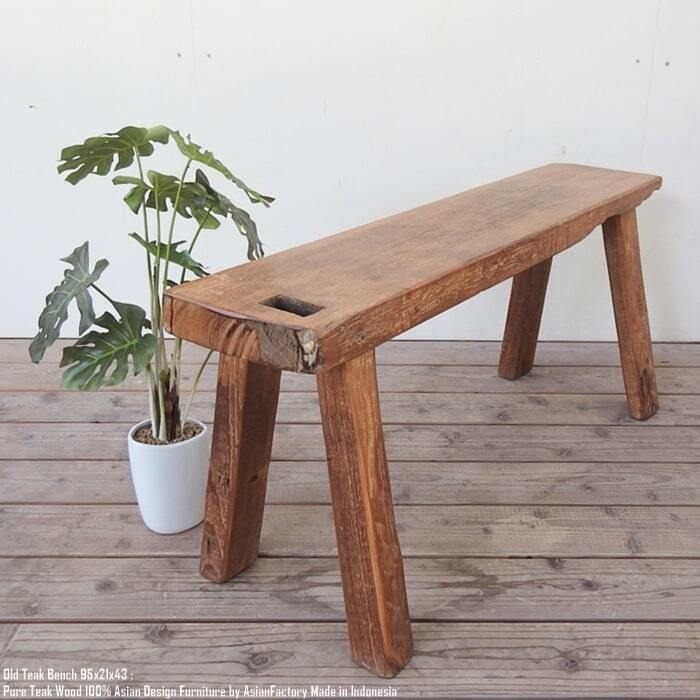 - 一点物 オールドチークベンチ 95cm 木製 木 おしゃれ 総無垢材 一枚板 飾り台 花台 アジアン家具 木製いす スツール