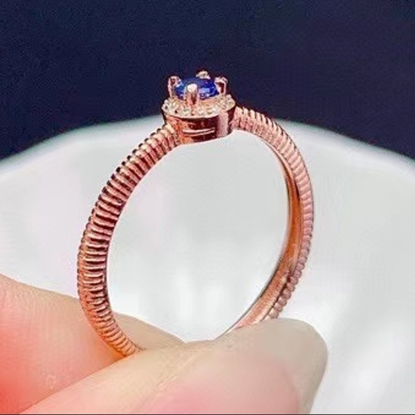 《証明書付き》サファイアの100%ナチュラルリング、3mm、シルバー925、日常着