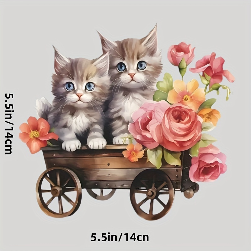 - 車用デカール 子猫の兄弟 花柄 14cm おもしろ 立体 3D トロッコ ねこ シール おしゃれ 窓用ステッカー ビニール 防水 かわいい ネコ t2934