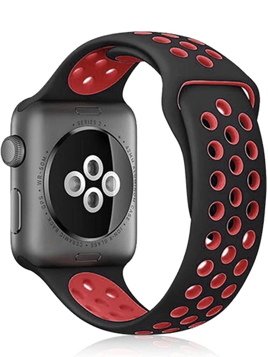 - Apple Watch アップルウォッチ バンド シリコン 交換ベルト ラバーベルト38/40/41mm シリーズ234567SE対応 スポーツバンド 通気性 黒赤