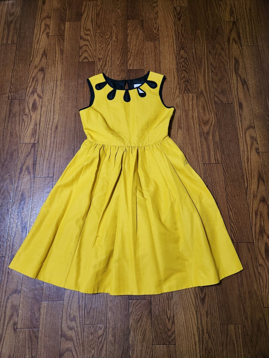 - ケイトスペード ワンピース マスタードイエロー 黒 シルク ガーリー エレガント 美シルエット 大人可愛い セレブ パーティーにも