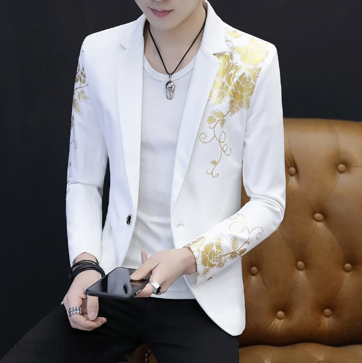 > ブレザー 新入荷 テーラードジャケット 折り襟 スリム 花柄 メンズ カジュアルスーツ 紳士 トップス お洒落 サイズ選択可 2色選ぶ/白/2XL